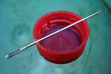 - Encaixe a agulha imantada na tampinha da garrafa de modo firme.